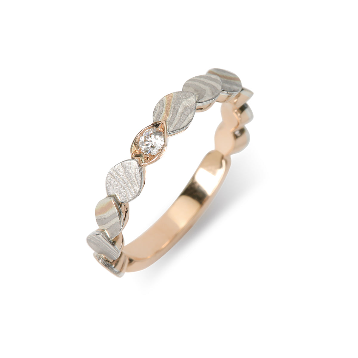 | 木目金(花びら10枚) | ・ゴールド(K18) ・シルバー ダイヤモンドの位置:左から5番目 |